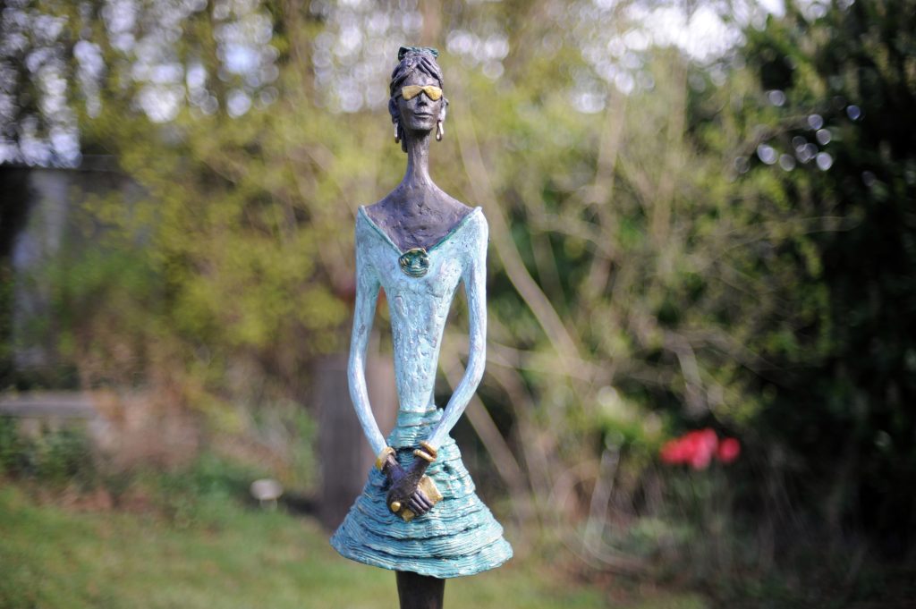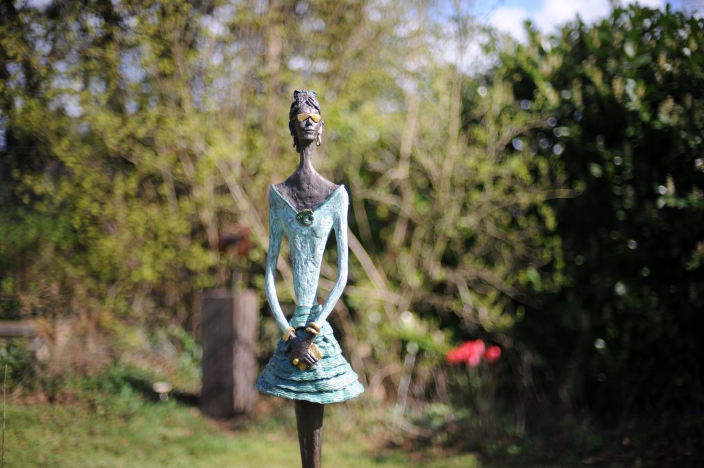 Sara is a featured artist here at the sculpture park and has exhibited with us a lot over the years. She is known for her stylish girls, who always bring a bit of glamour to the park.