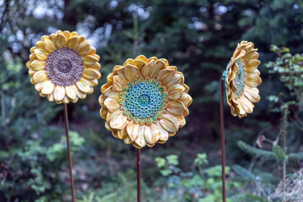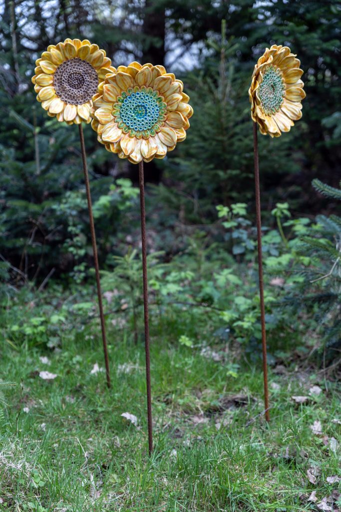 A beautiful large ceramic sunflower that will last outdoors all year round.