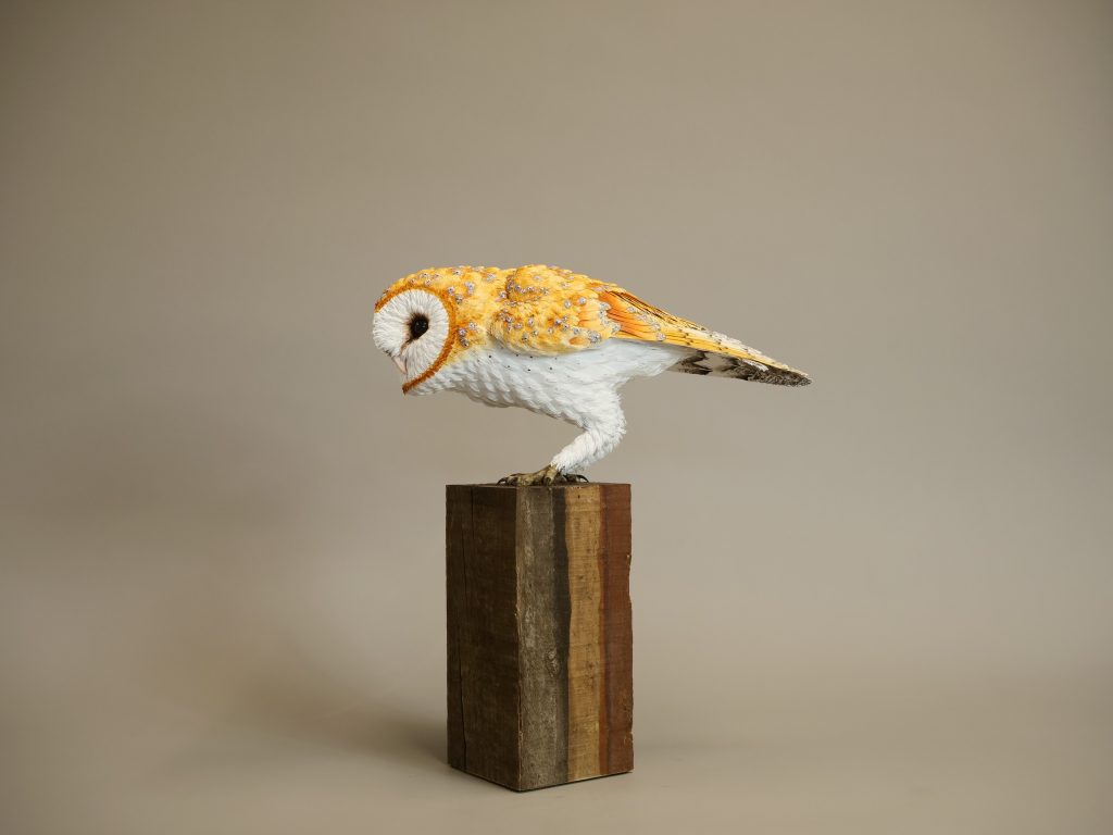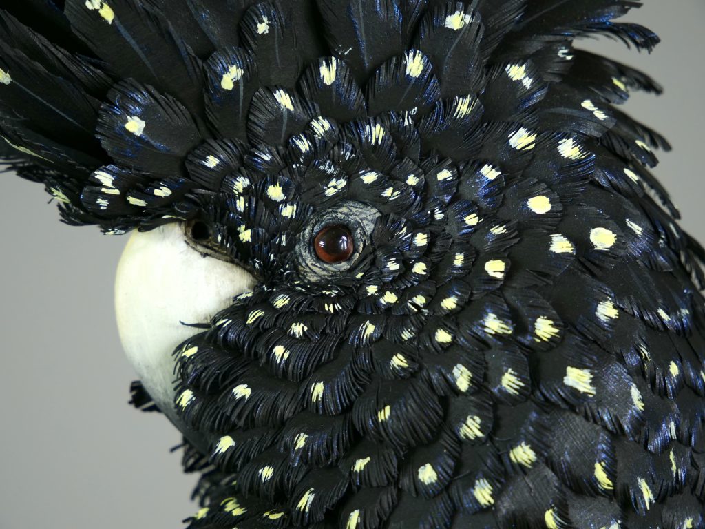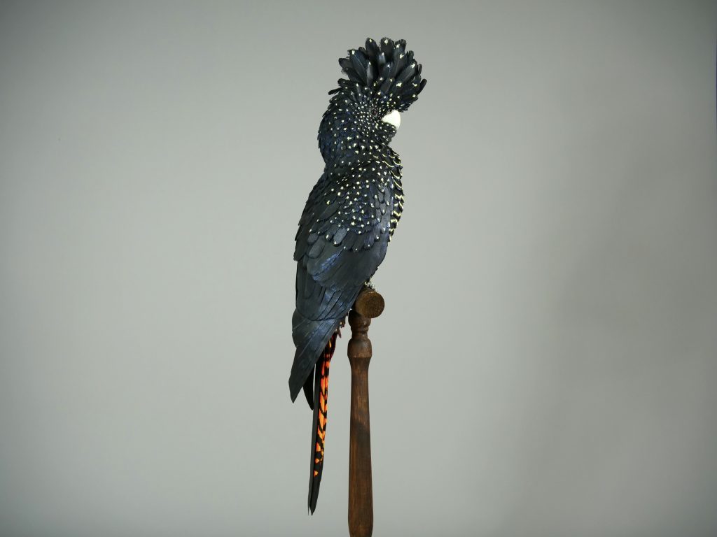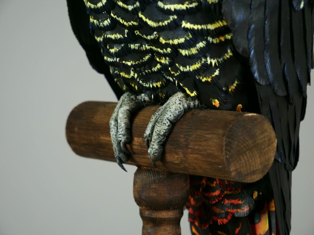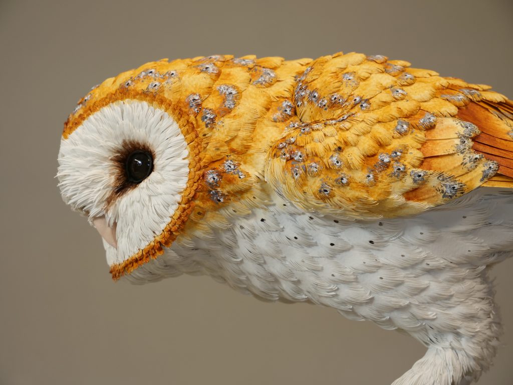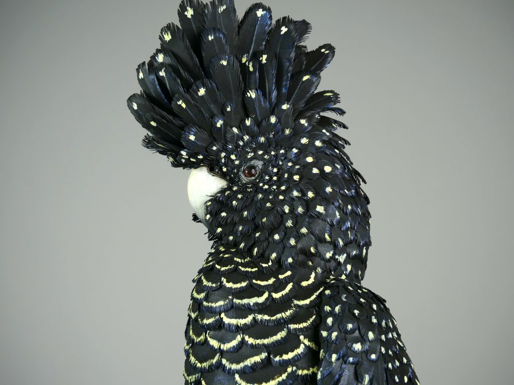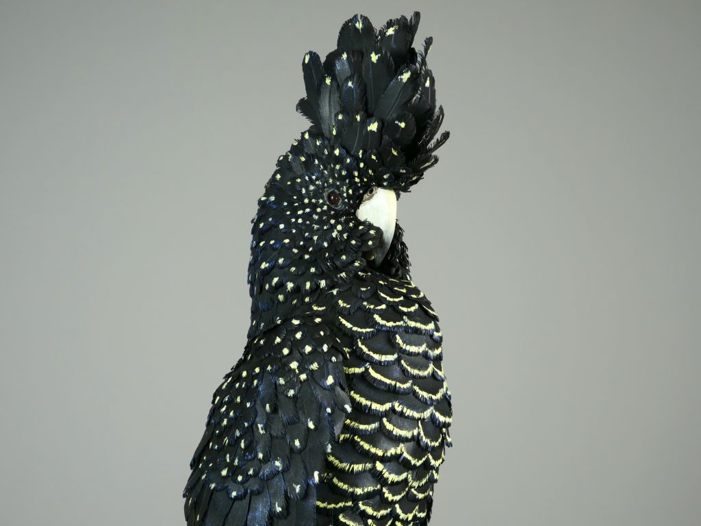 The piece is sculpted by hand in clay, which is then moulded and cast, creating the underlying form. Over this, each feather is individually hand-cut and painted from archival paper, and layered, allowing for a texture and delicacy that cannot be achieved through casting alone.