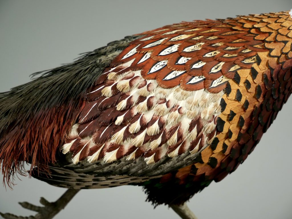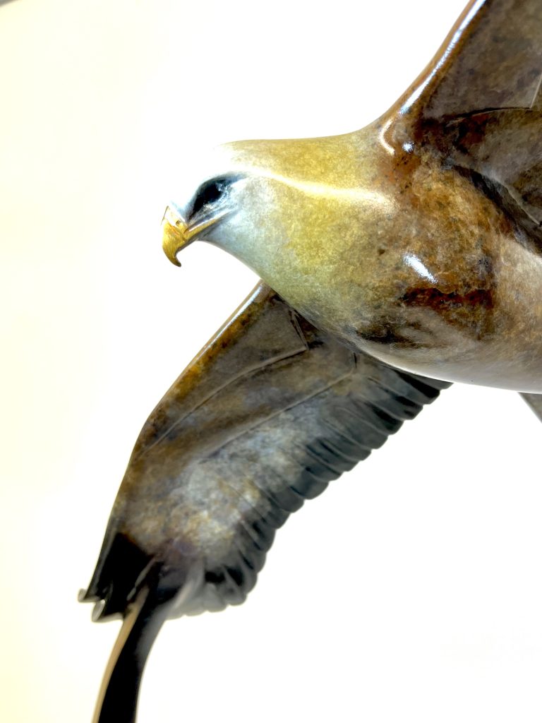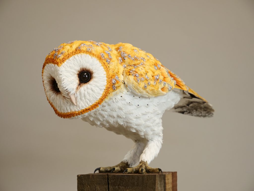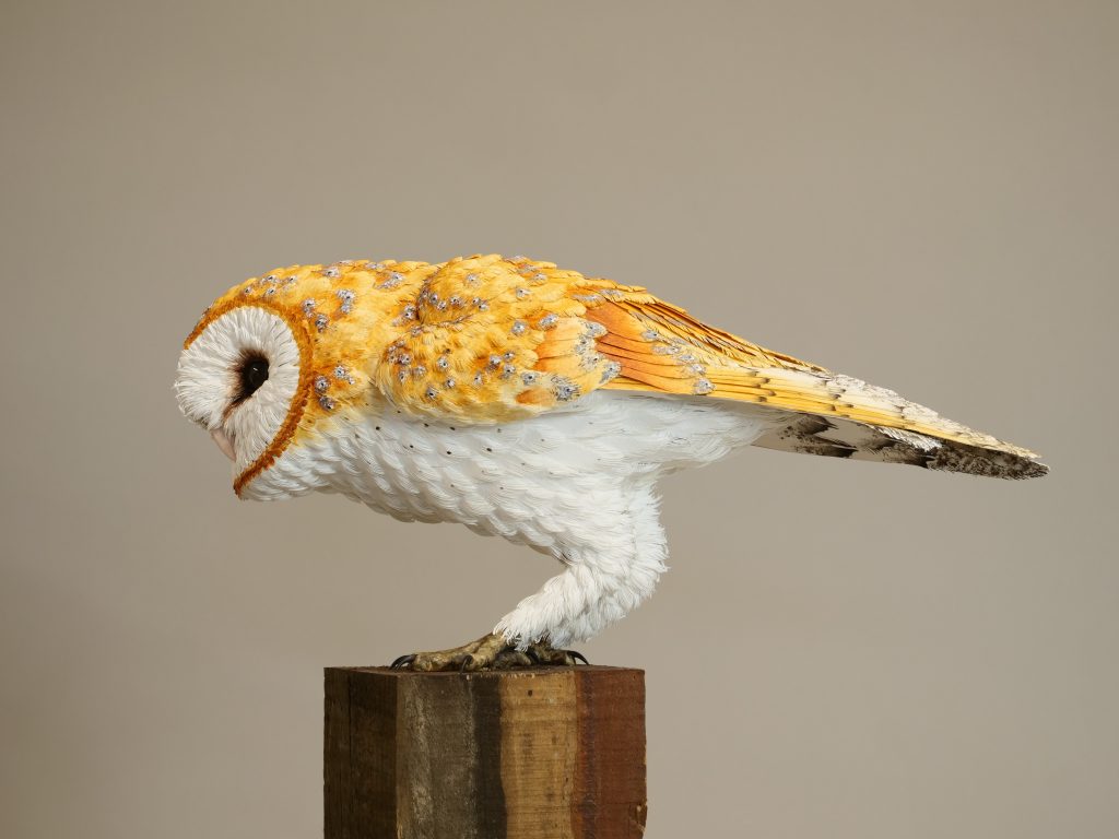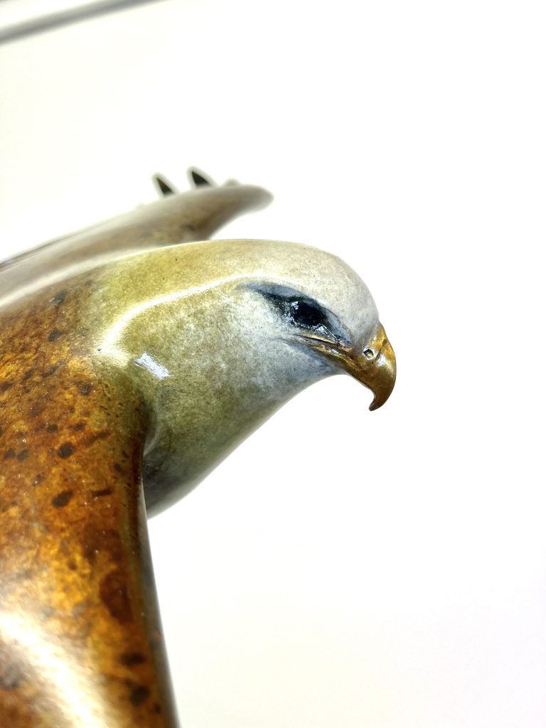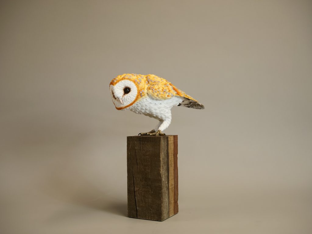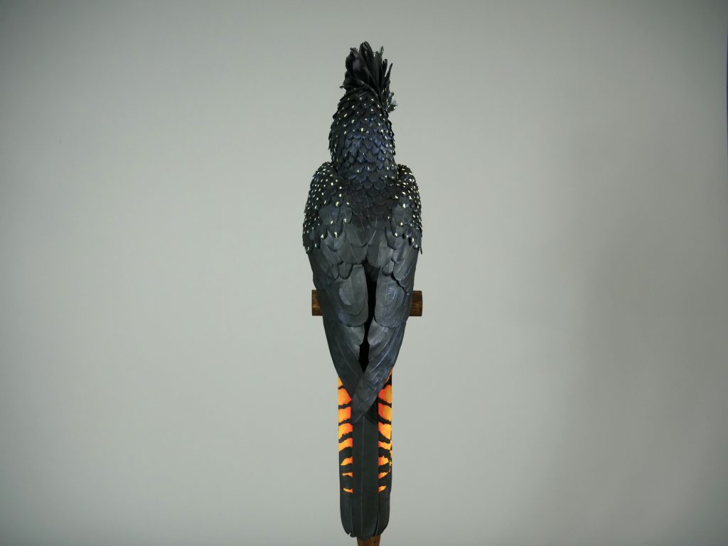 The piece is sculpted by hand in clay, which is then moulded and cast, creating the underlying form. Over this, each feather is individually hand-cut and painted from archival paper, and layered, allowing for a texture and delicacy that cannot be achieved through casting alone.