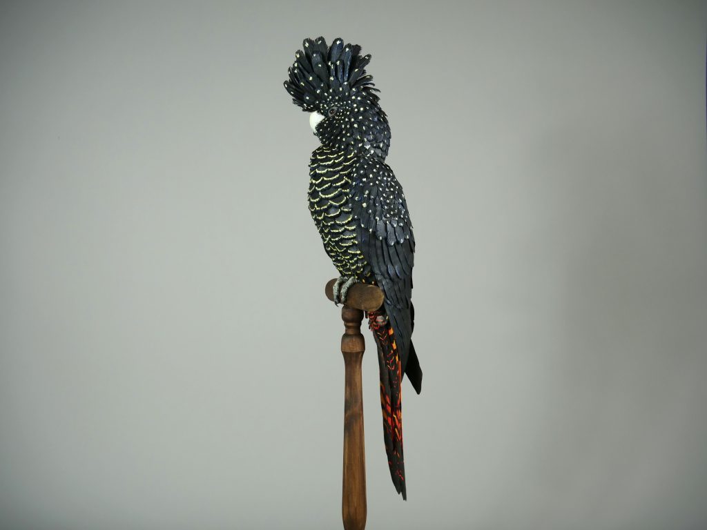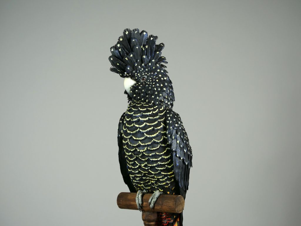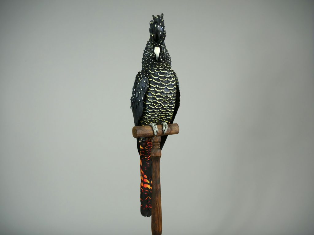 ‘Regalia’ explores ceremony, presence, and performance through the Red-tailed Black Cockatoo’s extraordinary crest. Raised like a ceremonial headdress, the bird occupies a moment of poised authority. The composition draws on operatic theatre, where stillness can be as commanding as movement, and where form, posture and silhouette convey power without spectacle.