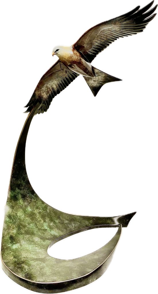 This sculpture captures the bird’s territorial confidence and regal flair, chest proudly lifted, shoulders set, and her magnificent, feathered crown fanned like a stage-worthy headpiece, commanding attention with theatrical poise.