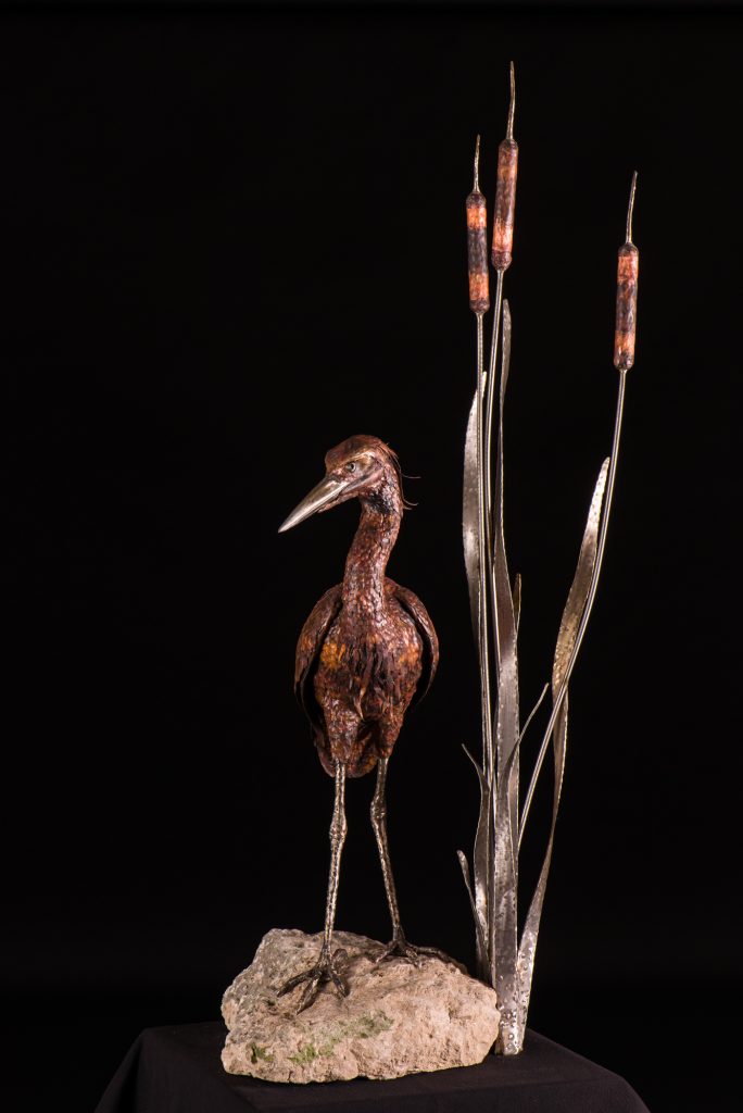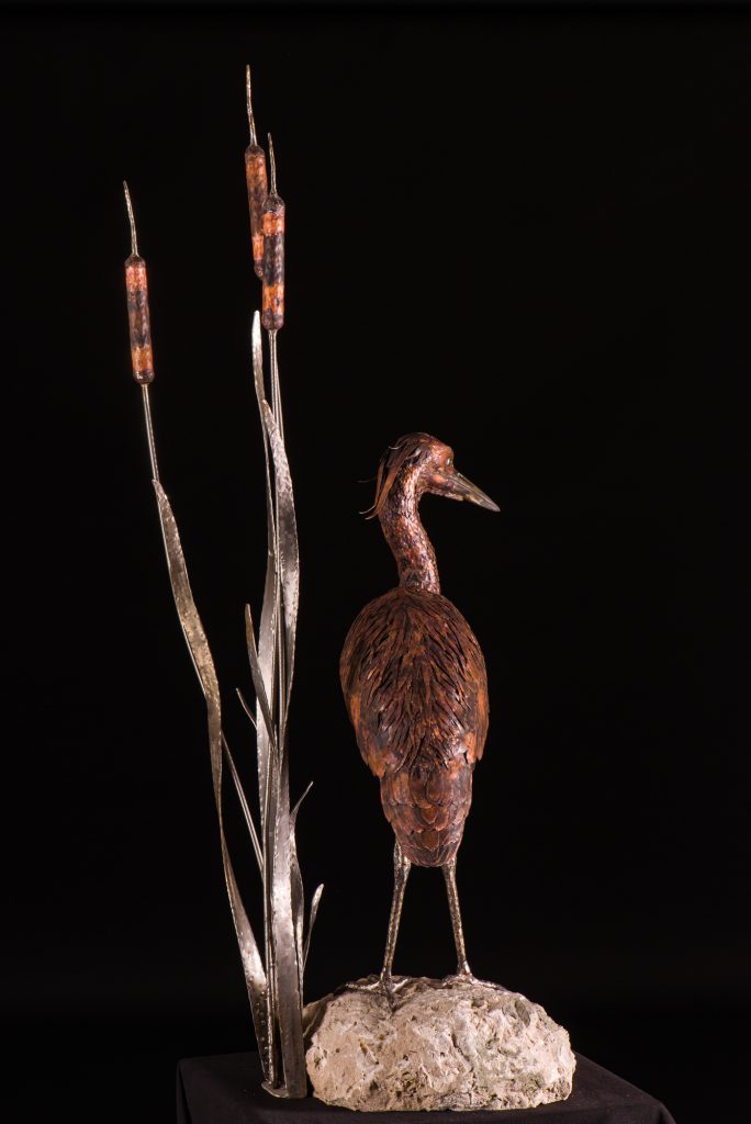 The contrast between the delicate human form and the watchful bird head gives the sculpture a whimsical, storybook quality. With its softly aged textures and calm, thoughtful pose, Birdie evokes curiosity, imagination and the quiet wisdom found in moments of reflection.