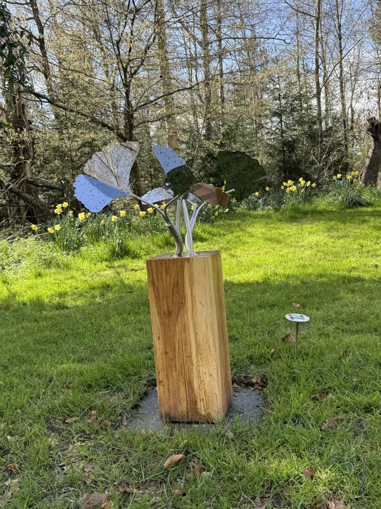 As the elements shift, the sculpture creates a rhythmic, meditative motion, with each disc responding subtly to the air currents. The polished metal surfaces catch and reflect the surrounding light, adding a shimmering quality that changes throughout the day.