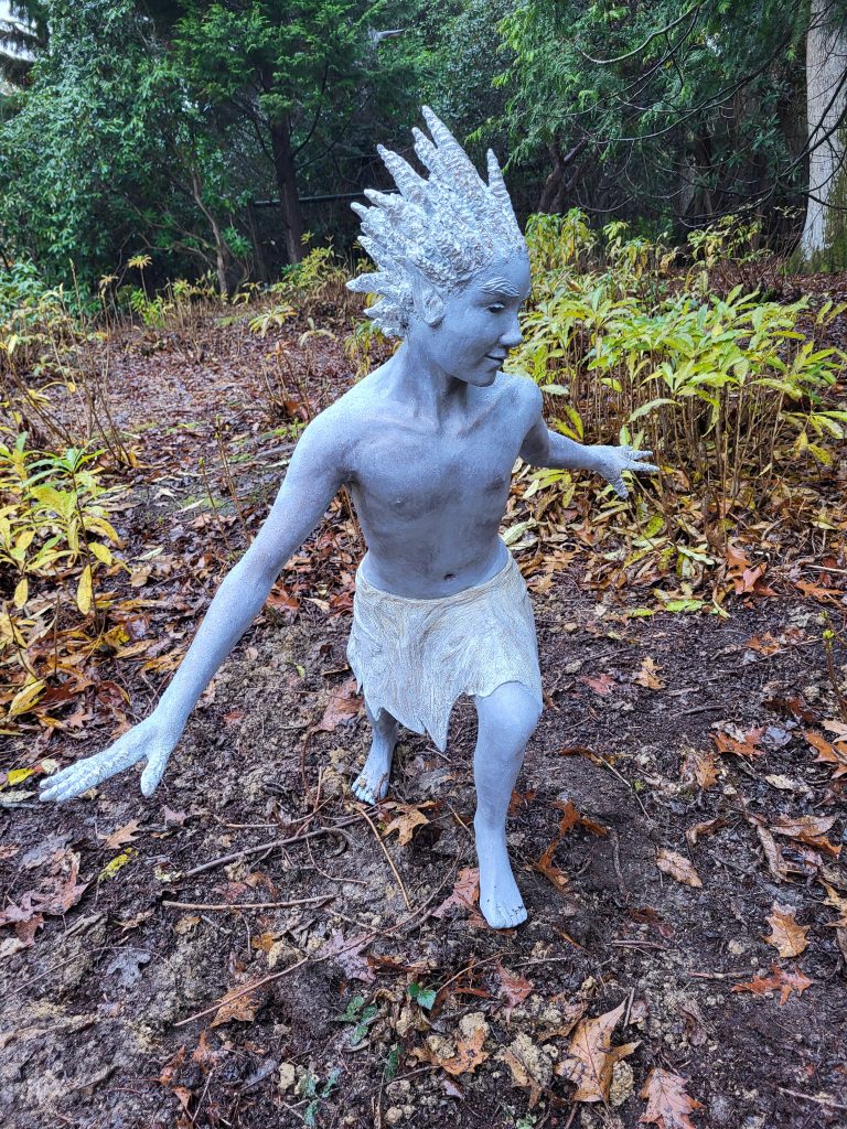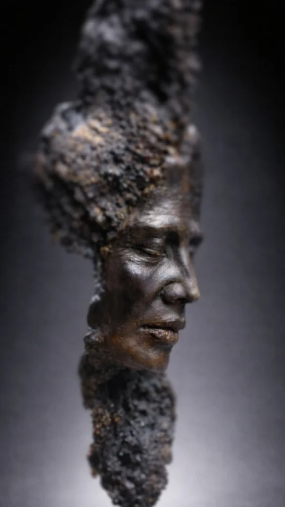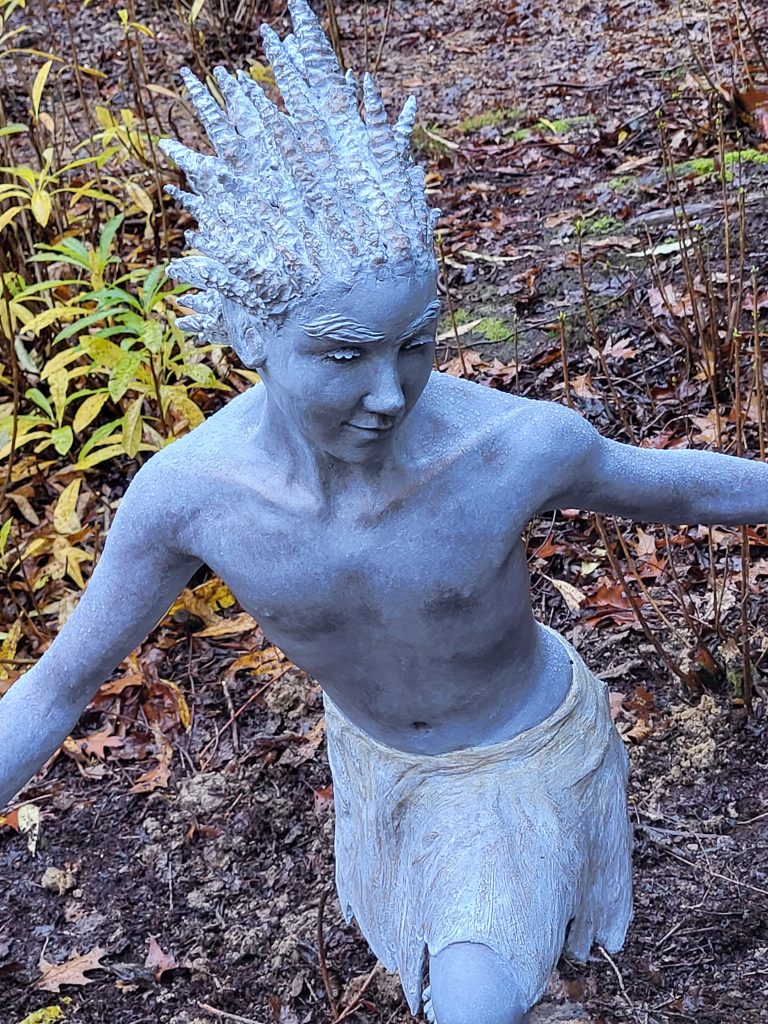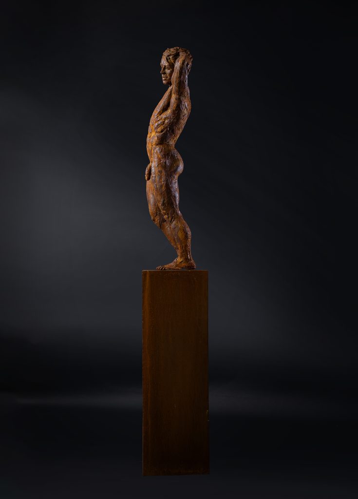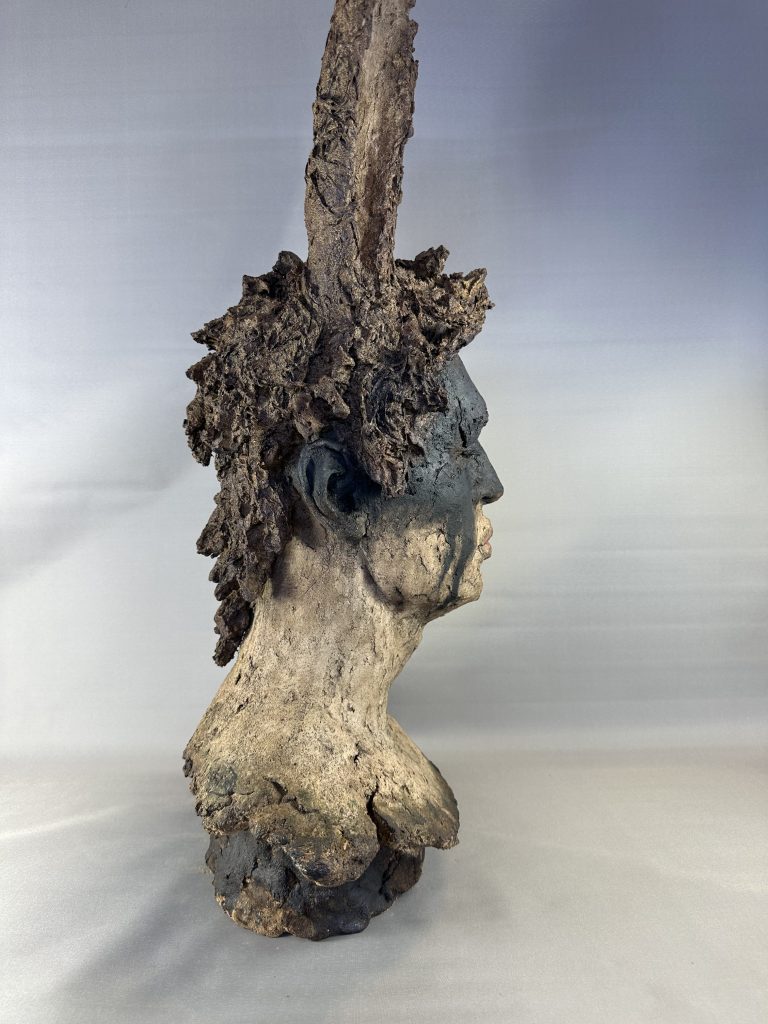 This piece includes the rough texture of the clay that the artist used to sculpt, with finger prints and artists marks still visible, giving the work a sense of energy and movement.
