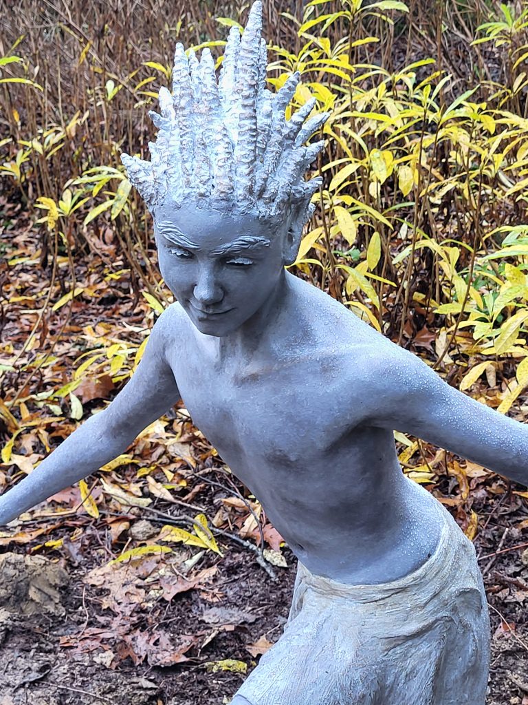A large figurative piece of a man errupting in joy and laugher, enjoying the warm presence of the summer months.