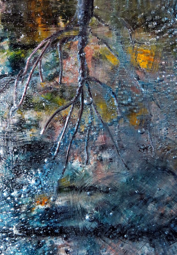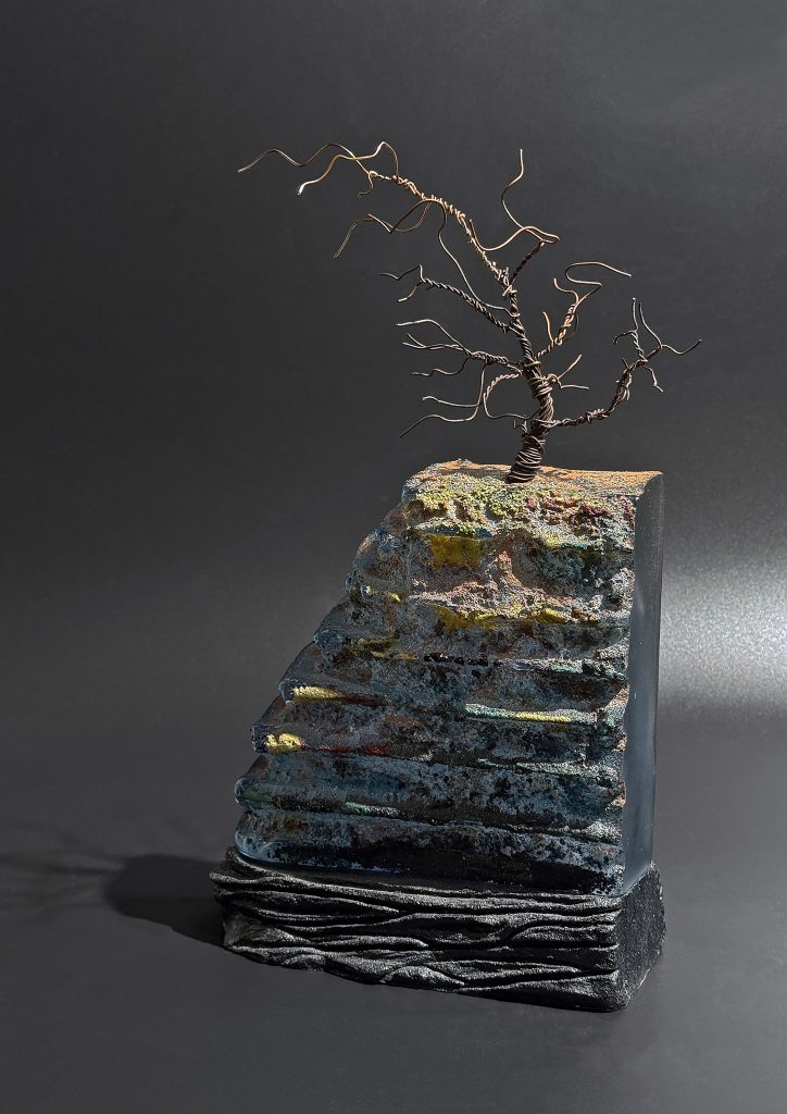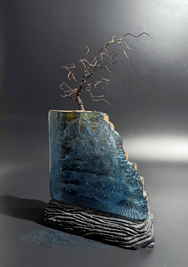 Sand cast glass, copper inclusions, ceramic base